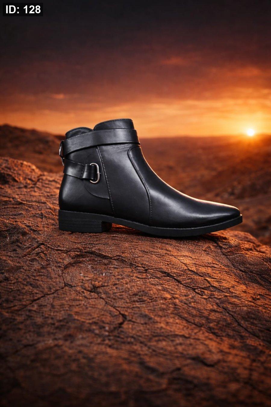 • التصميم: بوت كاحل بسير وزر معدني جانبي
