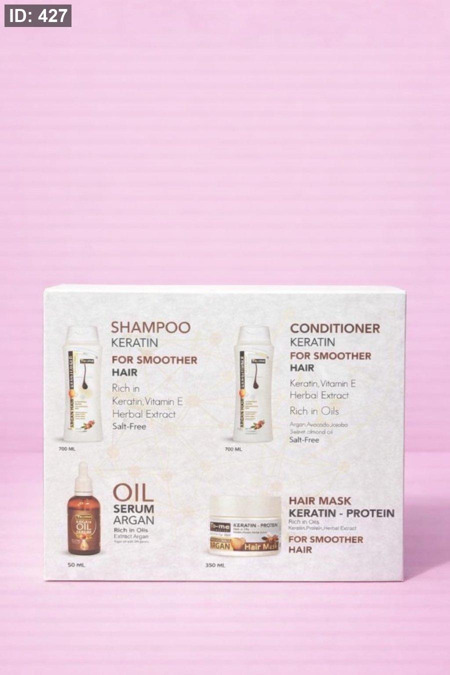 طقم متكامل غني بالكيراتين الطبيعي وزيت الأرغان مصمم لتنعيم الشعر، تقويته، واستعادة حيويته من الجذور حتى الأطراف. يعالج الجفاف والتقصف ويمنح الشعر ملمسًا ناعمًا ولمعانًا صحيًا.