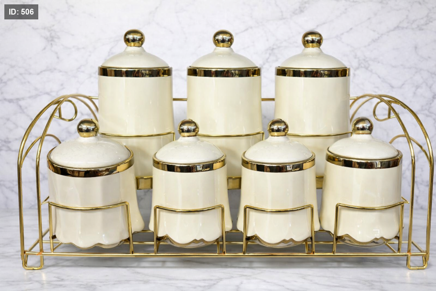 طقم علب مطبخ فاخر مع ستاند ذهبي