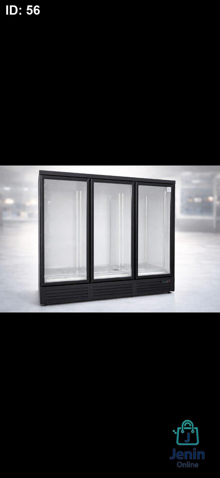 ثلاجة مخصصة لعرض المشروبات والمنتجات المبردة، مزودة بثلاثة أبواب زجاجية شفافة مع إضاءة LED داخلية لعرض واضح وجذاب.